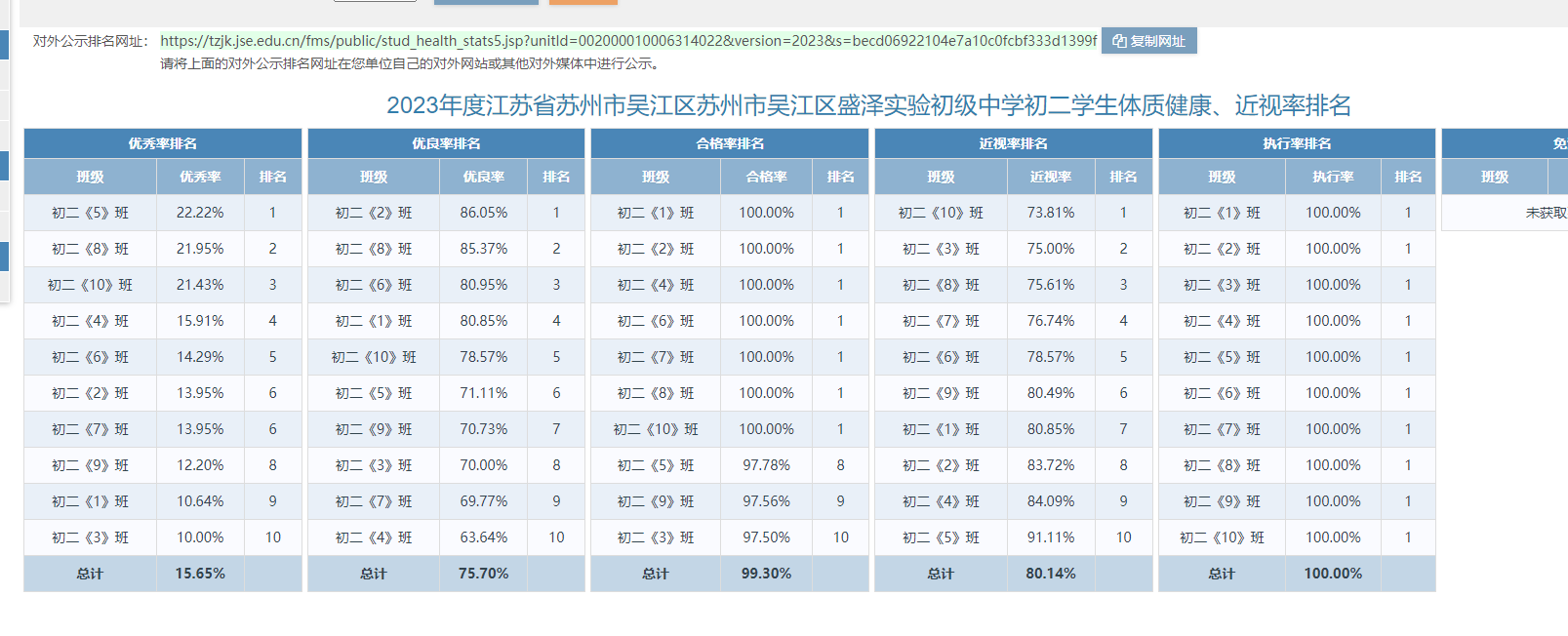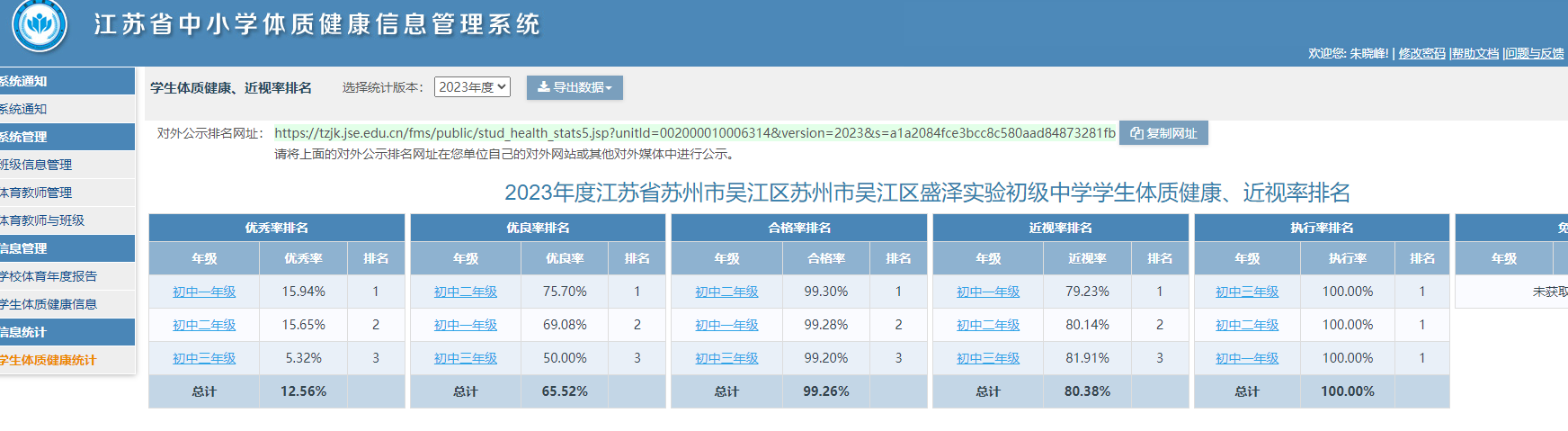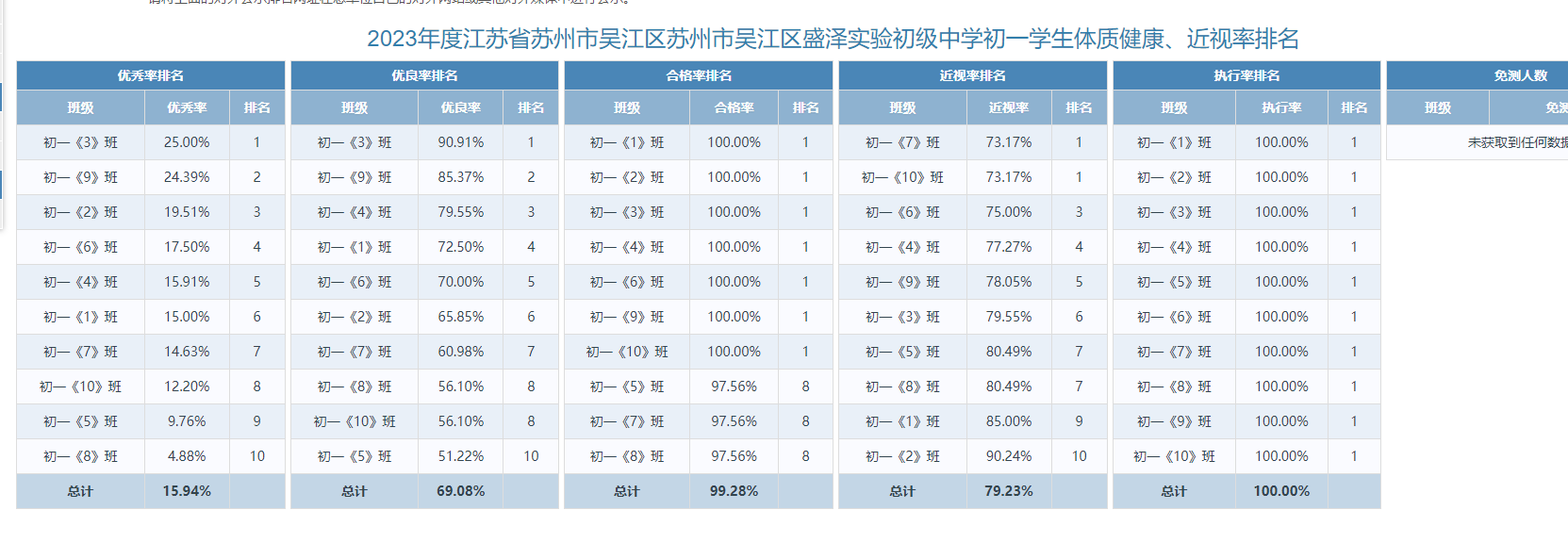 2023年度苏州市盛泽实验初级中学校学生体质监测排名公示和三好生体质监测情况公